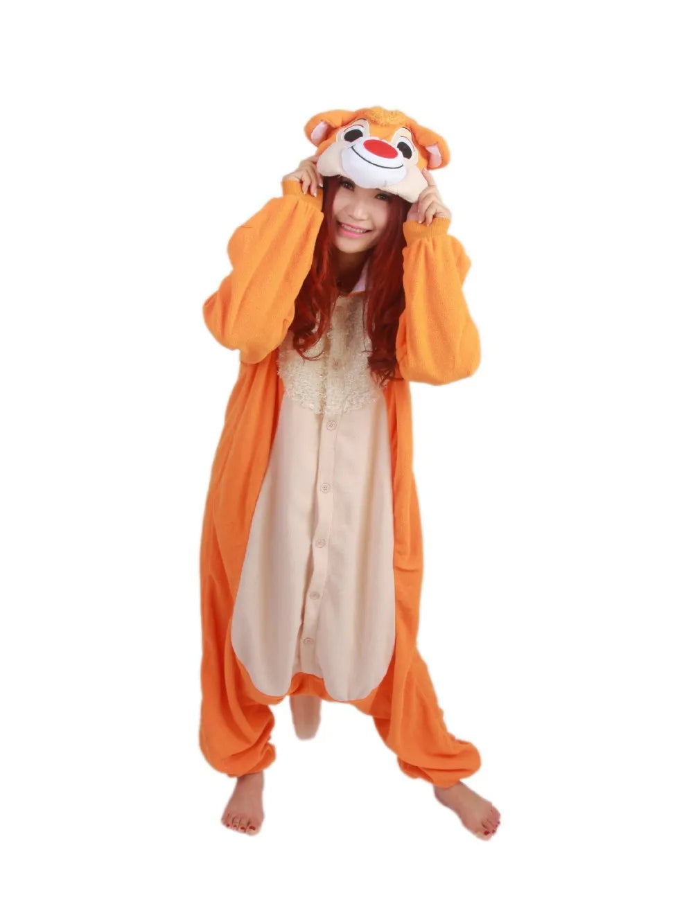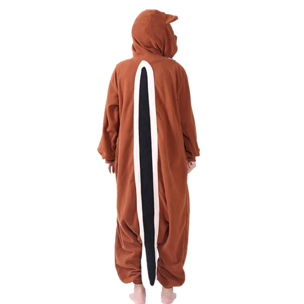 Slip into the snug charm of our Chipmunk-inspired onesie — complete with puffed cheeks, a plushy tail, and forest-ready stripes down the back. It’s the coziest way to channel your inner woodland mischief.