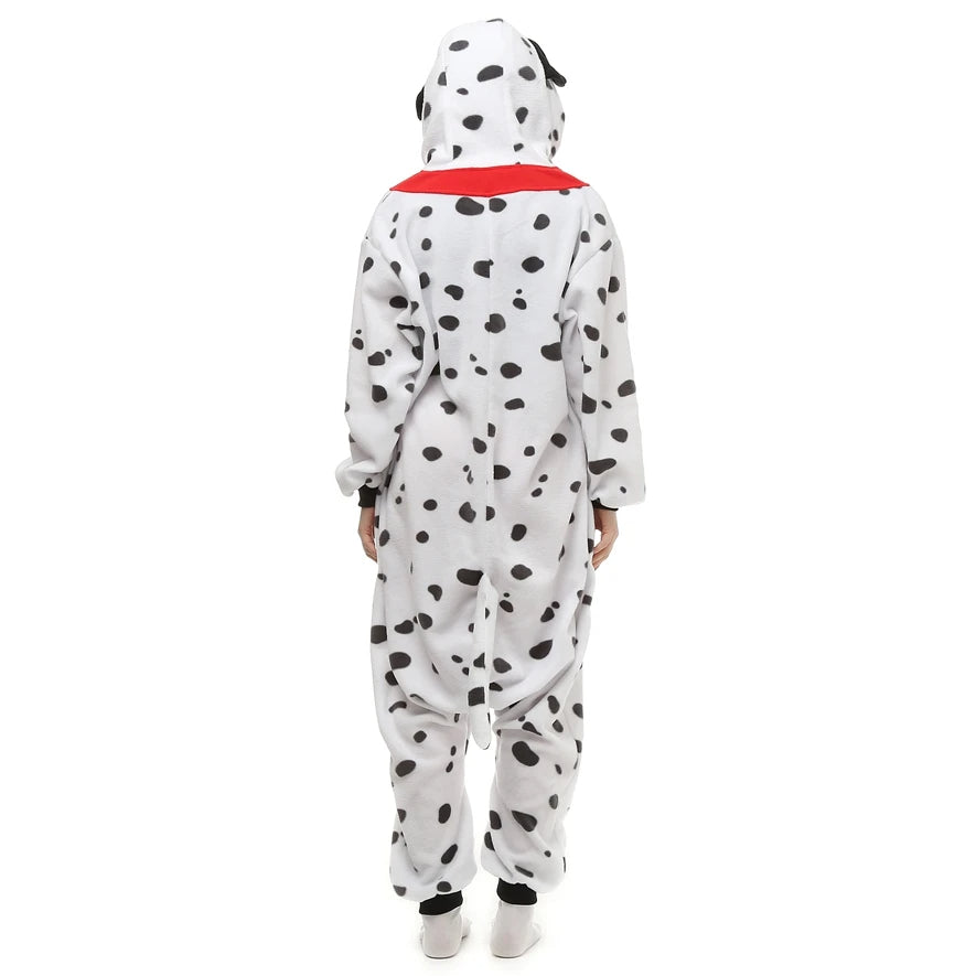 This Dalmatian-inspired onesie brings playful puppy charm into your lounge life. With its soft fleece, floppy ears, and all-over black spots, it’s made for comfort that turns heads and warms hearts.