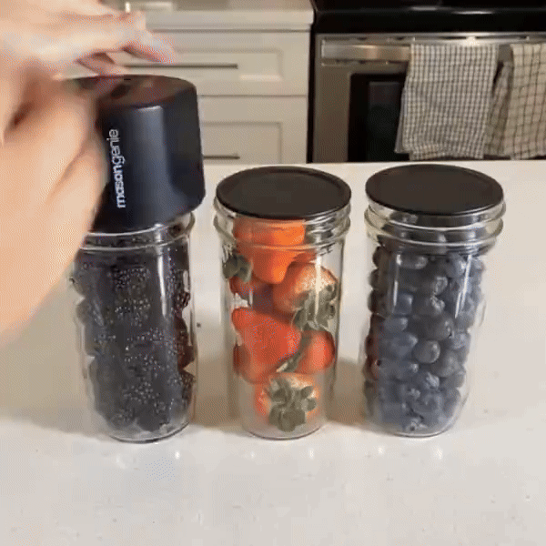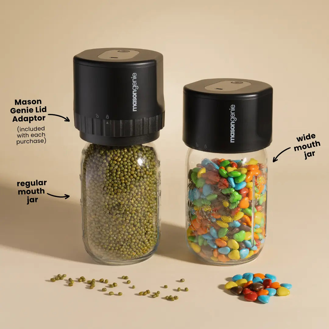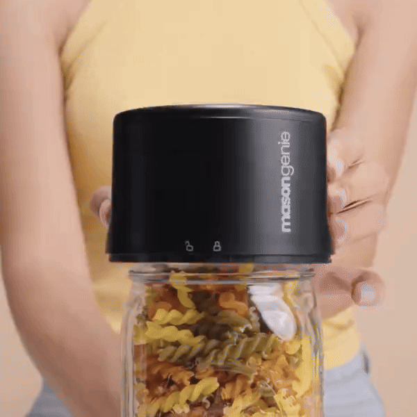 The Mason Genie will sucks all the air out of any mason jar and delivers a perfect airtight seal! This keeps your food fresher for longer and pantry pests out! - You can use any regular or wide-mouth mason jar! - You can seal and reseal as often as you want! - You can reuse lids! - You can use on dry foods, or produce to keep them fresher!